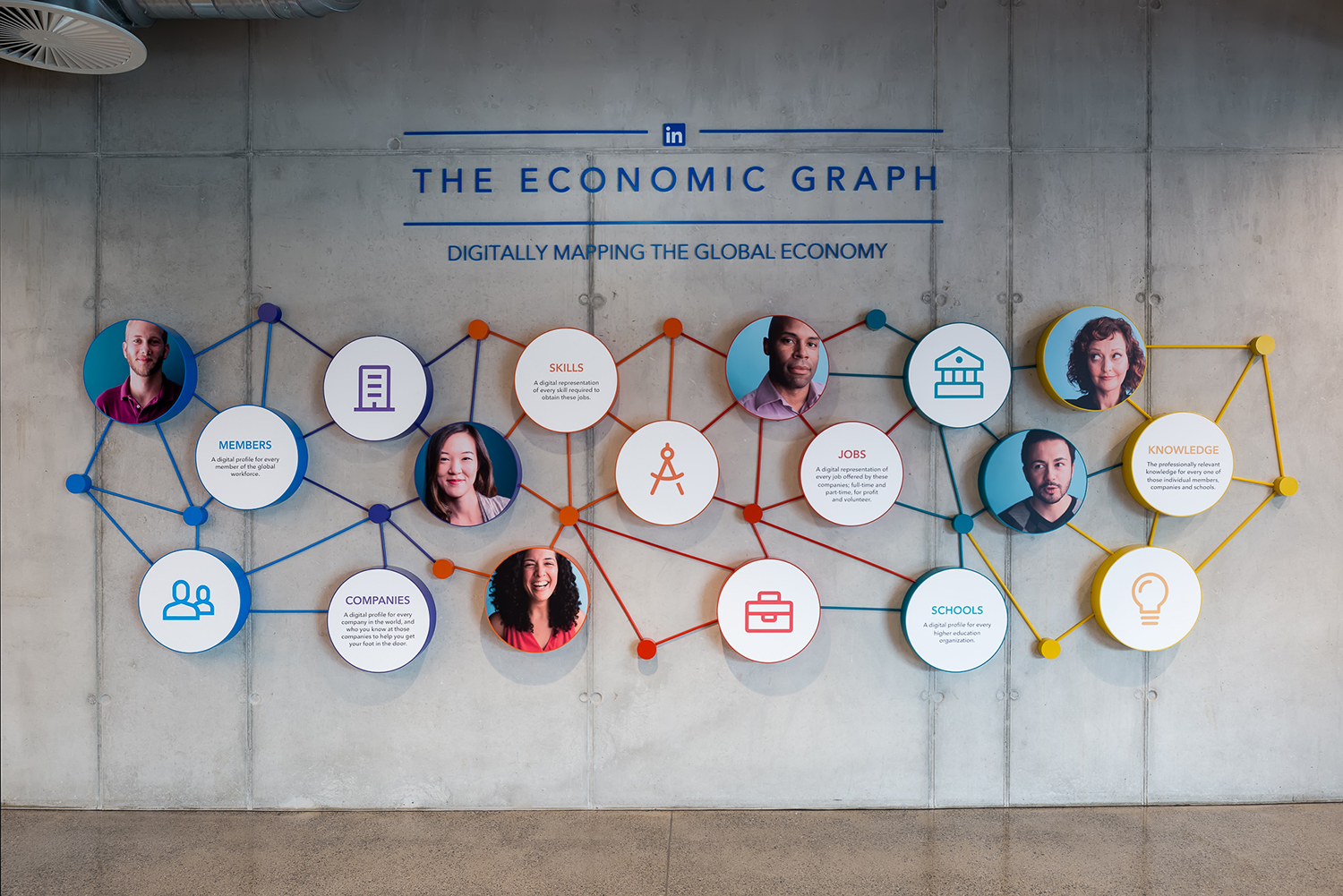 ”Cette signalétique murale et les créations graphiques ont nécessité près de deux ans de réflexion et de développement. Ce long travail a été rendu possible grâce à une équipe exceptionnelle chez Seek Design et une communication fluide avec les collaborateurs de LinkedIn.